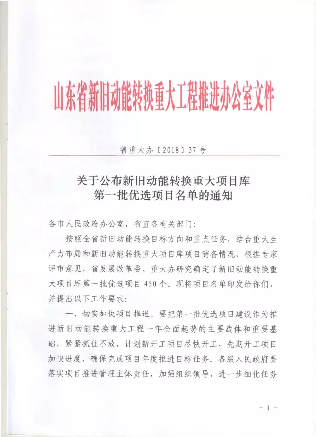近日,省重大办印发《关于公布新旧动能转换重大项目库第一批优选项目名单的通知》,发布450个新旧动能转换重大项目库第一批优选项目,总投资1.8万亿元。这批优选项目经过重大项目专家评审,全部从新旧动能转换重大项目库900个先期储备项目中筛选产生,突出了质量优先、规划引领、条件完备三个原则,具备良好的示范带动作用。