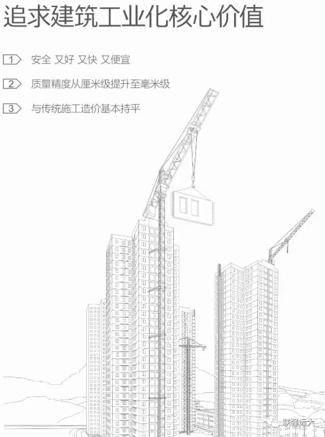 建筑产业以绿色发展为理念,通过设计标准化、构件生产工厂化、现场施工装配化、工程管理信息化,对建筑全产业链进行改造、升级,有利于缩短建设周期、节能降耗、减少环境污染、提高施工质量安全,具有经济、社会双重效益,是建筑行业的一场革命,对促进建筑行业转型升级与产业结构调整,全面提升建筑品质,实现节能减排、改善人居环境具有重要意义。统计显示,装配式建造方式可减少建造用水量60%以上、减少建造综合能耗70%以上,可减少材料浪费20%以上、建造垃圾80%以上。同时,现场用工作业量减少,扬尘、噪声污染大大降低。