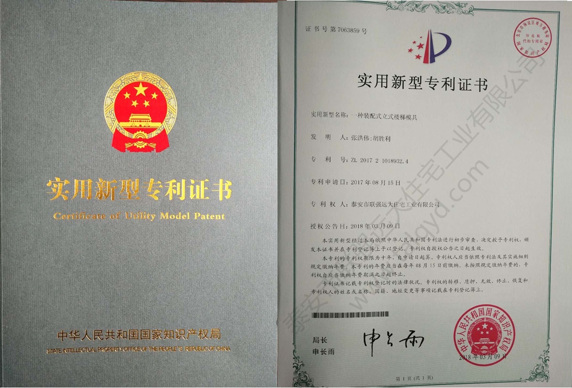 3月9日,由联强远大公司董事长张洪伟带领技术团队潜心研发的实用新型专利“一种装配式立式楼梯模具”,经国家知识产权局严格审查,成功申请国家专利!此专利的应用将装配式建筑应用带上新高度,进一步响应了省、市新旧动能转换战略思想。公司发展至今,现已取得了多项实用新型技术专利和多项发明技术专利。