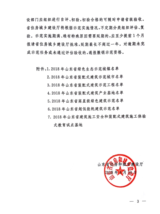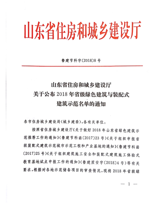 3月12日,山东省住房城乡建设厅下发《关于做好2018年山东省绿色建筑示范推荐工作的通知》文件,泰安联强远大建筑工业科技有限公司位列2018年山东省建筑施工安全和装配式建筑施工体验式教育试点基地名单之中。